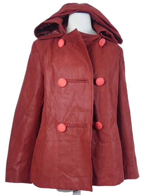 Dámský červený koženkový podzimní kabát s kapucí