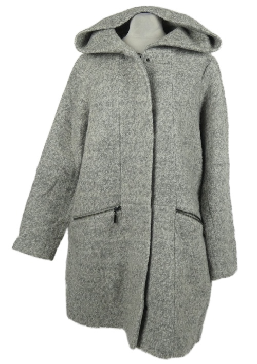 Dámský šedý vlněný kabát s kapucí C&A