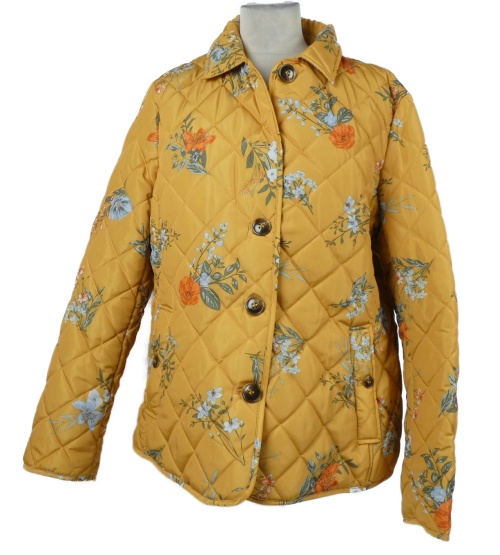 Dámská okrová kytičkovaná šusťáková prošívaná zateplená bunda Bonmarché