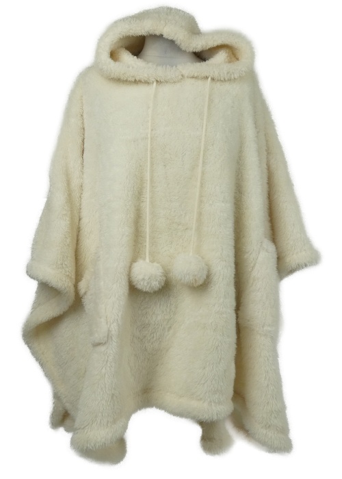 Dámské smetanové chlupaté pončo s kapucí Cozee