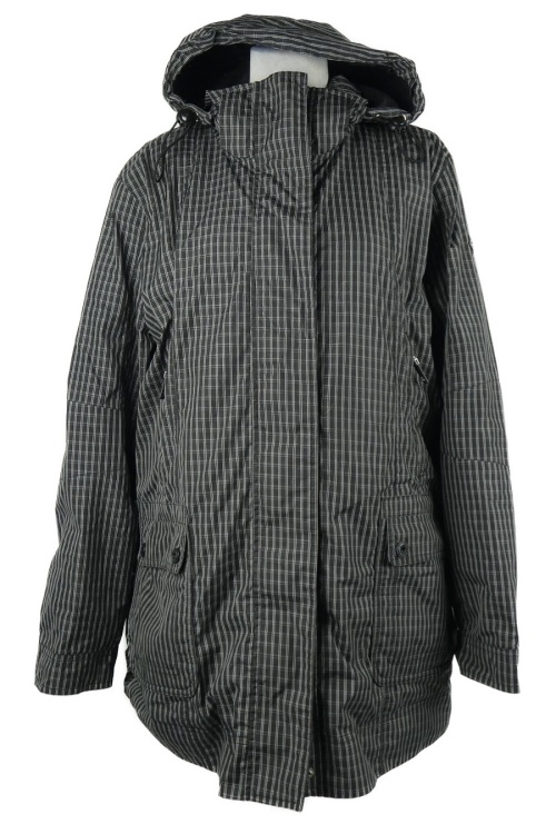 Dámská tmavošedo-bílá kostkovaná šusťáková jarní parka s kapucí Roadsign