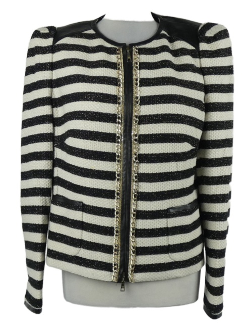 Dámská černo-smetanová pruhovaná třpytivá bunda s řetízky