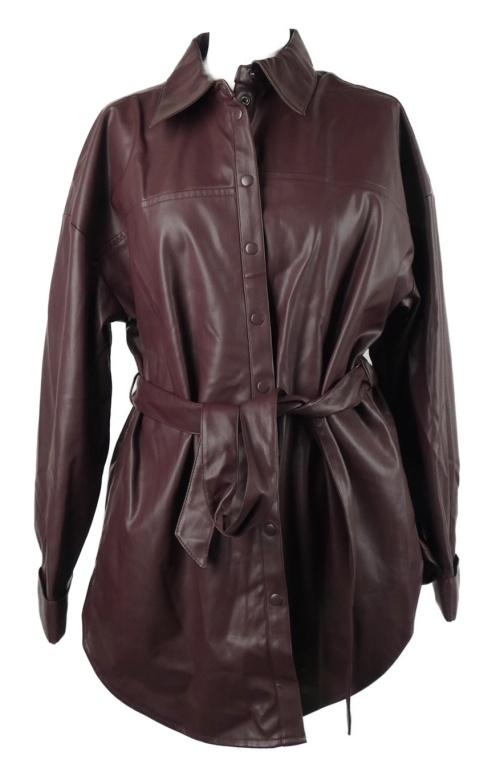 Dámský vínový koženkový kabát s páskem Amisu