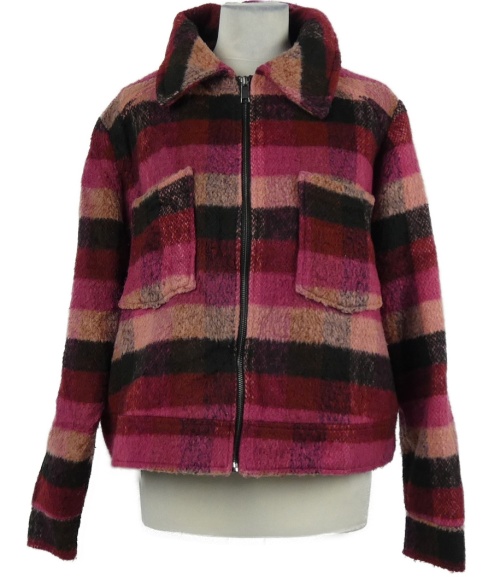 Dámská růžovo-černá kostkovaná vlněná bunda SimplyBe