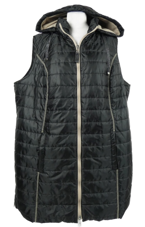 Dámská černá šusťáková zateplená vesta s kapucí vel. 54
