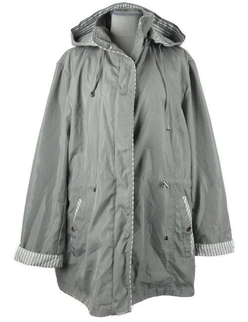 Dámský šedý šusťákový jarní kabát s kapucí Saturne vel. 54