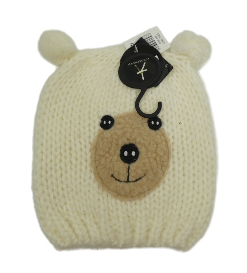 Nové - Dámská bílá pletená čepice s medvídkem Atmosphere