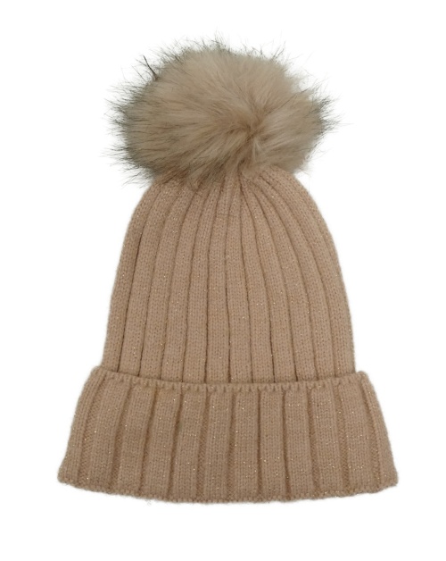 Dámská světlerůžová třpytivá čepice s bambulí Primark