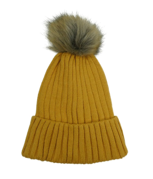 Dámská okrová žebrovaná čepice s bambulí Primark