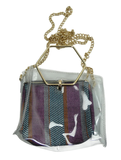 Dámská bílo-barevná vzorovaná crossbody kabelka s řetízkovým popruhem