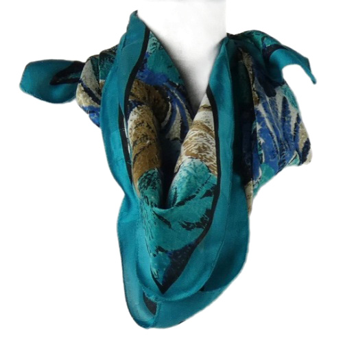 Dámský tyrkysovo-hnědý šátek s tygry