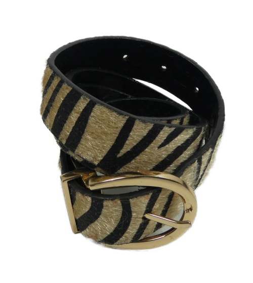 Dámský černo-béžový vzorovaný koženkový pásek