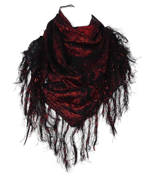 Dámský černo-červený třpytivý kytičkovaný šátek s třásněmi