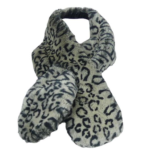 Dámská béžovo-černá vzorovaná kožešinová šála St. Bernard