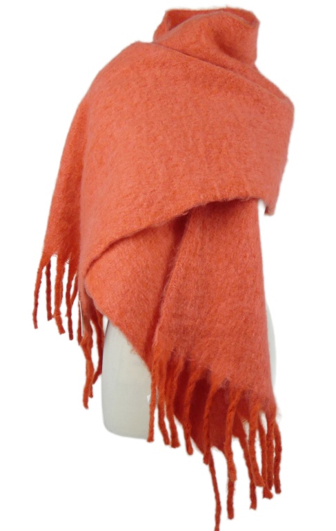Nové - Dámská korálová teplá maxi šála s třásněmi