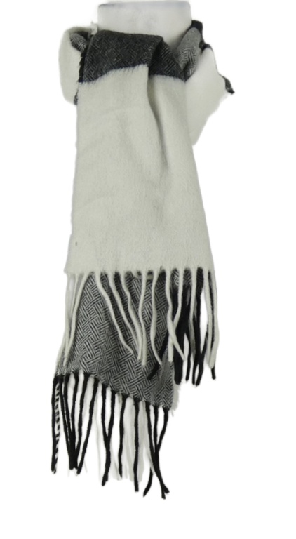 Dámská černo-bílá vzorovaná vlněná šála s třásněmi