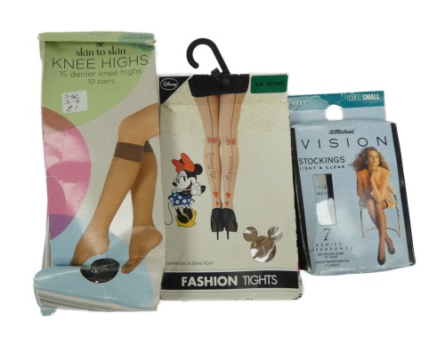 • Nové - 3x Dámské tělové podkolenky + tmavomodré punčochy + tělové silonky s Minnie
