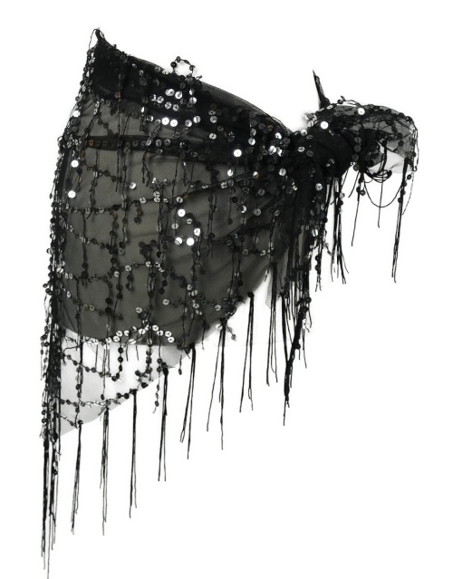 Dámské černé tylové pareo s flitry a třásněmi