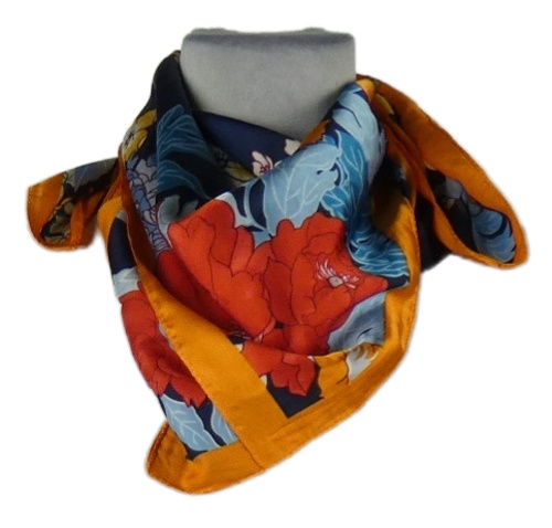 Dámský modro-oranžovo-červený květovaný šátek