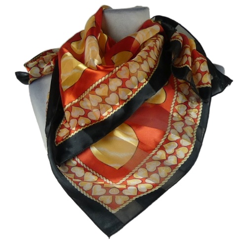 Dámský červeno-žluto-černý srdíčkovaný šátek