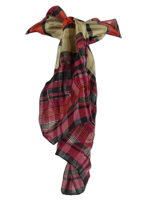 Dámská červeno-růžovo-béžová kostkovaná šála