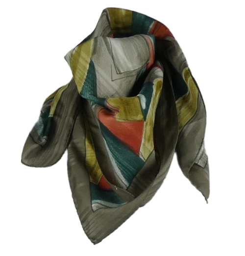 Dámský hnědo-zeleno-červený vzorovaný šátek