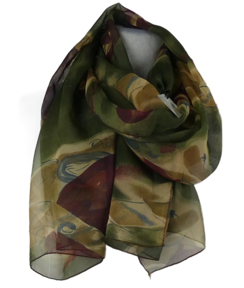 Nové - Dámský khaki-béžovo-vínový vzorovaný šifonový šátek