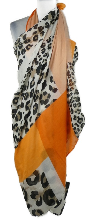Dámské bílo-oranžovo-černé vzorované pareo