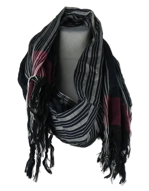 Dámská tmavomodro-růžovo-černá pruhovaná šála s třásněmi