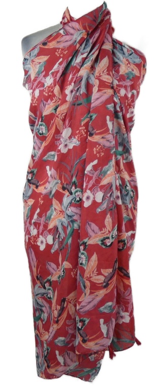 Dámské červené květované pareo s třásněmi