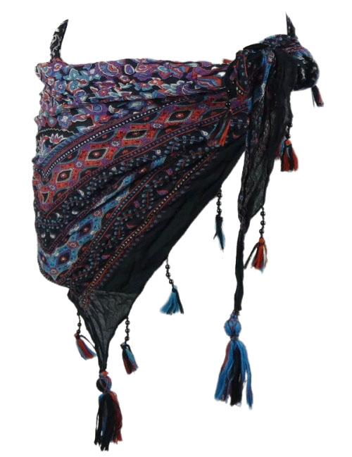 Dámské černo-barevné vzorované pareo s třásněmi