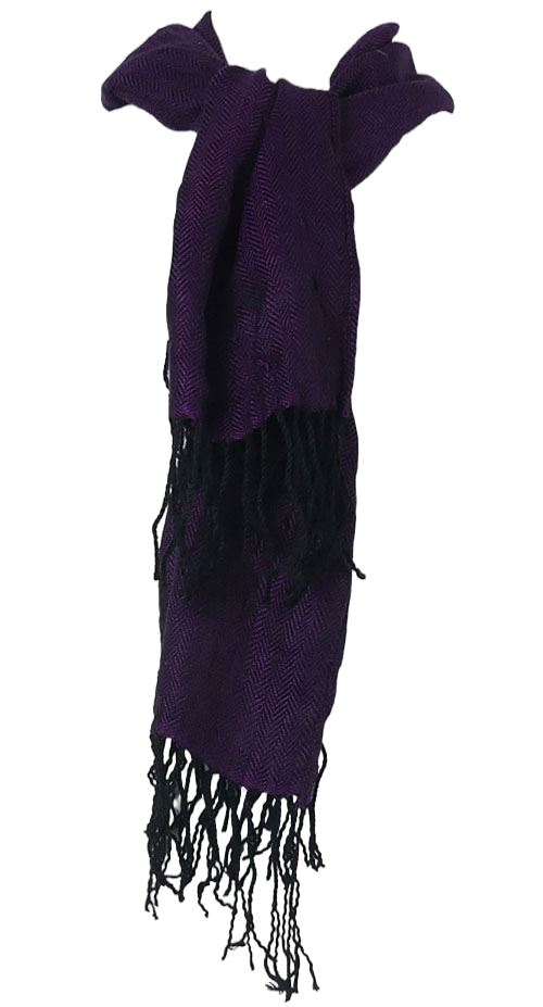 Dámská purpurovo-černá vzorovaná šála s třásněmi