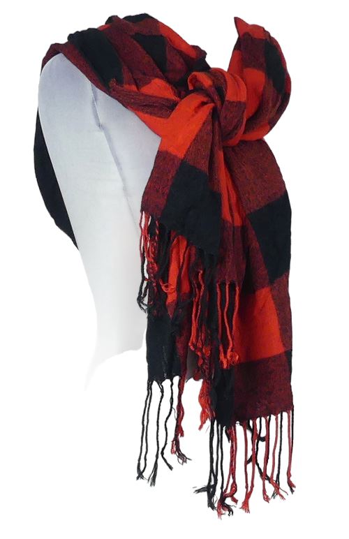 Dámská červeno-černá kostkovaná šála s třásněmi