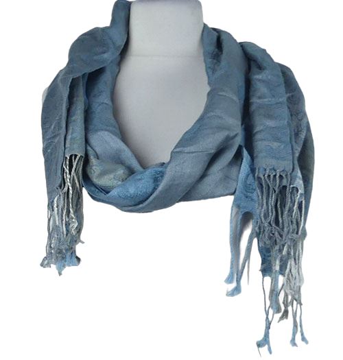 Dámská světlemodrá vzorovaná šála s třásněmi