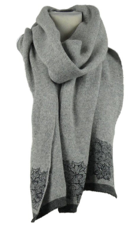 Dámská šedá pletená šála s květy