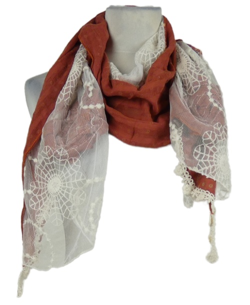 Dámská červeno-bílá kytičkovaná šála s výšivkou