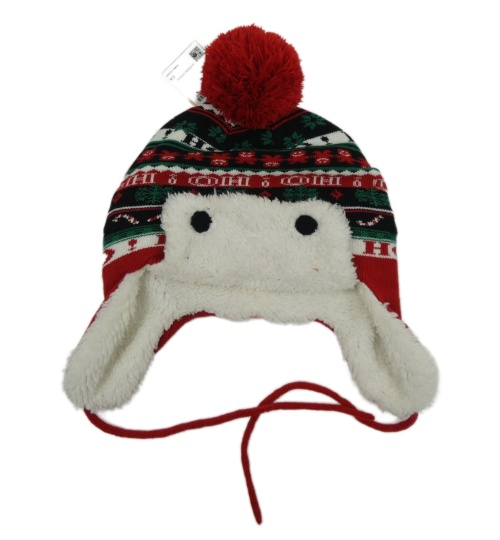 Dámská červeno-černo-zelená vzorovaná čepice s bambulí C&A