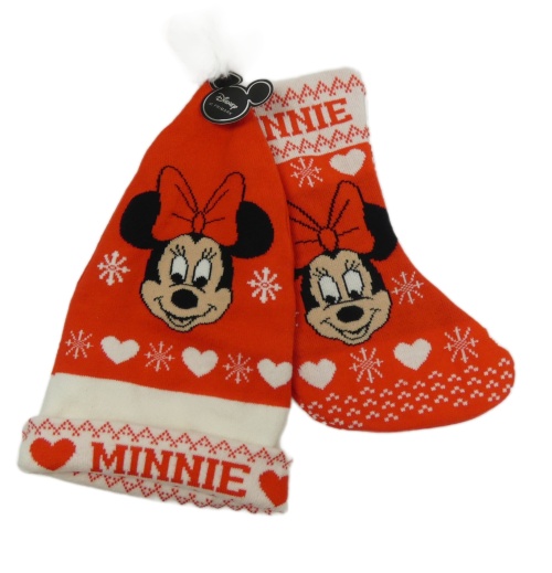 • Nové - 2set - Dámská červeno-bílá čepice s Minnie + vánoční punčocha Primark