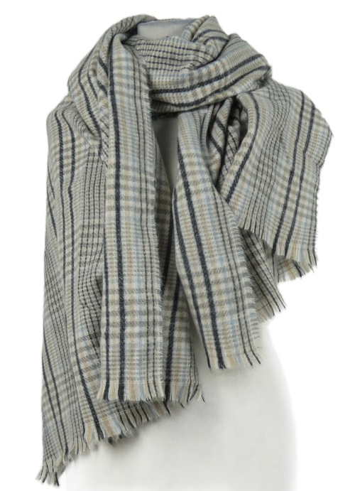 Dámská tmavomodro-béžovo-bílá kostkovaná šála
