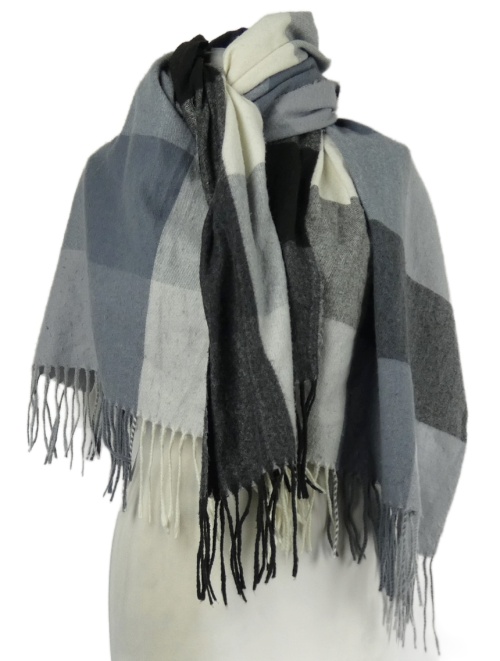 Dámská šedo-tmavošedá kostkovaná šála s třásněmi