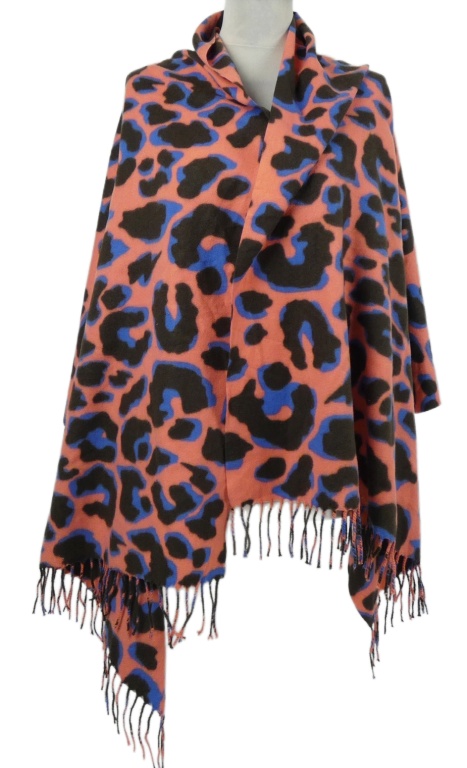 Dámská růžovo-šedo-modrá vzorovaná šála s třásněmi