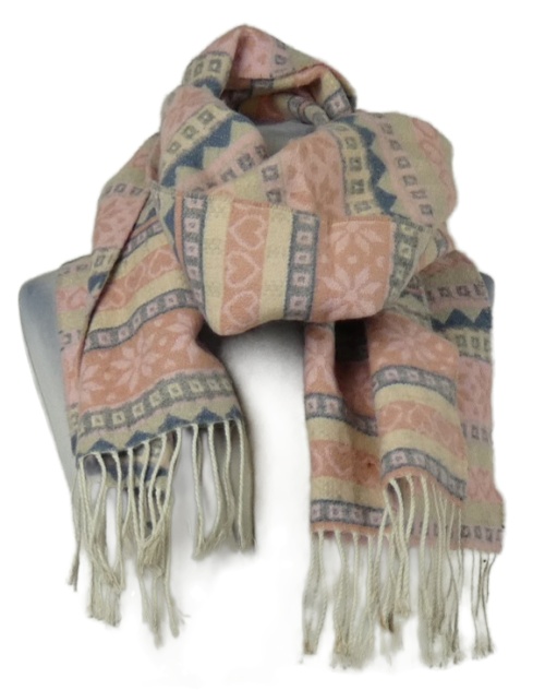 Dámská růžovo-modrá vzorovaná šála s třásněmi