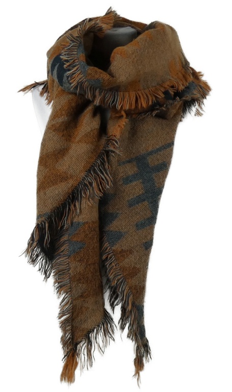 Dámská skořovo-tmavomodrá vzorovaná pletená teplá šála s třásněmi