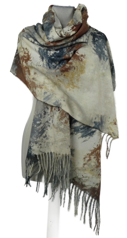 Dámská béžovo-modrá vzorovaná šála s třásněmi