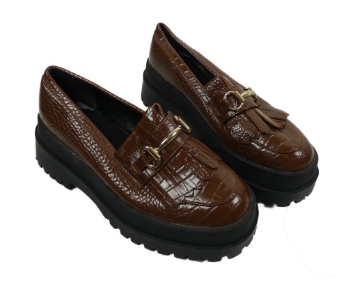 Nové - Dámské hnědo-černé koženkové mokasíny na platformě vel. 38