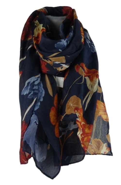 Dámský tmavomodrý květovaný šátek