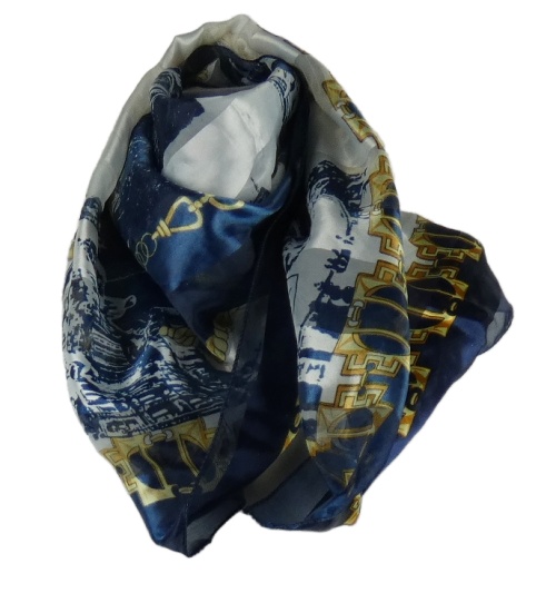 Dámský tmavomodro-bílý vzorovaný šifonový šátek s potiskem