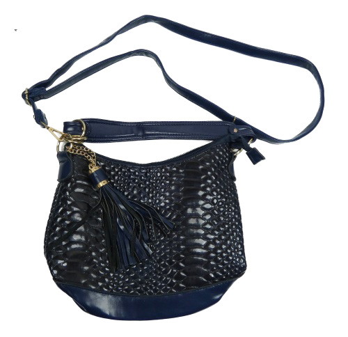 Dámská tmavomodrá vzorovaná lakovaná koženková crossbody kabelka