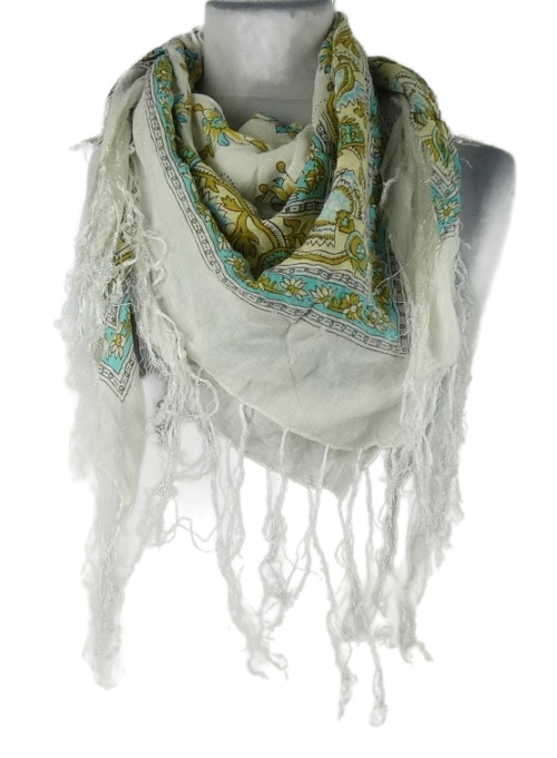 Dámský bílo-barevný vzorovaný šátek s třásněmi