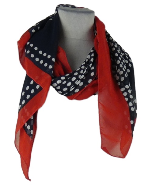 Dámský tmavomodro-červený šifonový šátek s puntíky